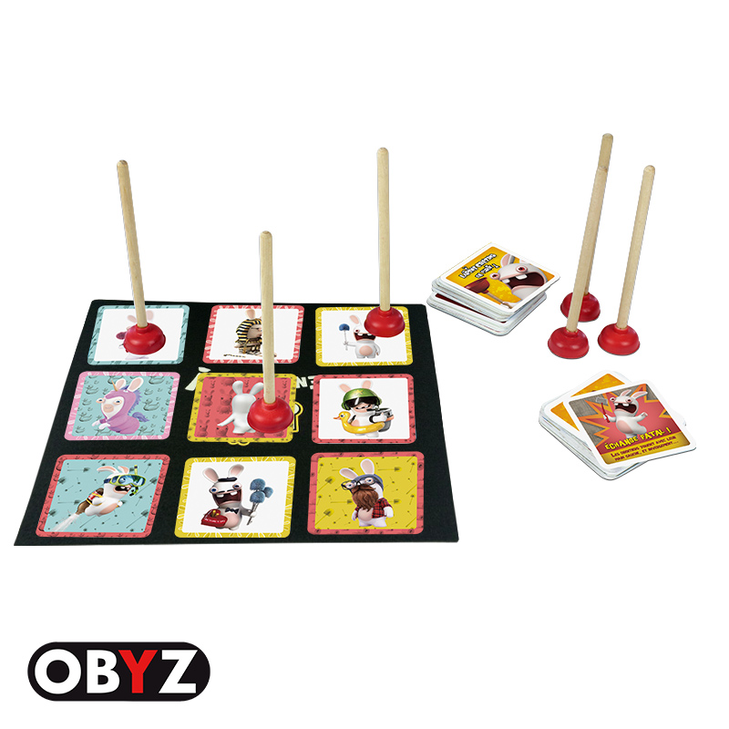 Je vous présentais il y a quelques temps Le Gros Défi, un jeu de société mettant en scène les Lapins Crétins pour s’amuser entre amis ou en famille. Obyz remet les couverts avec un nouveau jeu, Lapins Crétins en Furie ! Ce jeu s’inspire de célèbre jeux d’observations et de rapidité tels que Jungle Speed ou Dobble (qui existent tous deux en version Lapins Crétins) , et mettra vos réflexes à rude épreuve au moyen d’une ventouse à déboucher les toilettes !